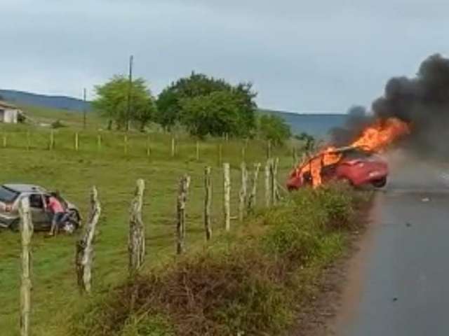 Veículos colidem na AL-487, PM fica ferido e um dos carros pega fogo