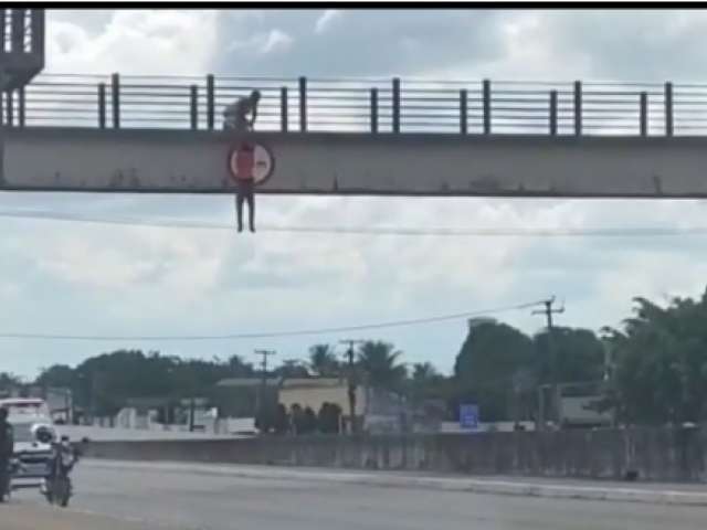 Homem tenta pular de viaduto e é salvo com ajuda de retroescavadeira em Teotônio