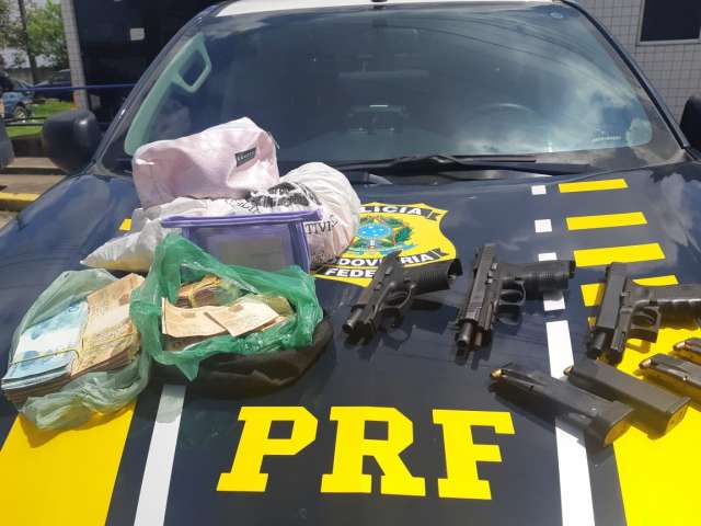 PRF flagra em PE carro com placa de AL carregado de pistolas, dinheiro e cheques