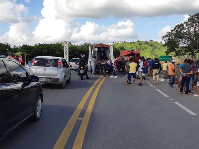 Colisão entre caminhões na BR-316 em Cajueiro deixa três pessoas feridas