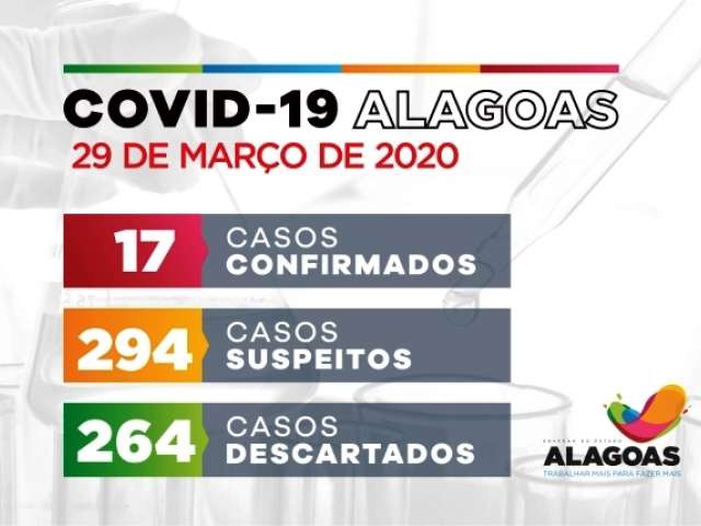 Alagoas tem 17 casos confirmados para Covid-19 e 294 estão em investigação