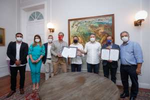 Mesmo em um momento desafiador de crise econômica e com a queda da receita do Estado durante a pandemia, o governador de Alagoas, Renan Filho, manteve o compromisso e garantiu o patrocínio aos clubes de futebol que atuam na Série B do Campeonato Brasileiro - CRB e CSA. Durante a assinatura do repasse, o chefe do Executivo também autorizou o início da reforma das arquibancadas do Rei Pelé e anunciou o retorno gradual do público aos estádios. A solenidade foi realizada nesta terça-feira, 14, no Museu Palácio Floriano Peixoto.