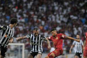 Mas o Galo reagiu em dois minutos. Aos 26, Hulk cobrou pênalti com categoria e fez o primeiro dos visitantes. Um minuto depois, aos 27, Keno fez um golaço. O atacante recebeu a bola na entrada da área, cortou a marcação e finalizou colocado.