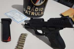 A viatura se aproximou do automóvel, que em seguida parou para que um passageiro desembarcasse. Nesse momento foi feita a abordagem e a busca pessoal. O condutor ao ser questionado disse que não havia arma, nem qualquer material Ilícito no carro, masa busca veícular foi realizada e foi encontrada uma pistola calibre 380 e modelo 838C, e um carregador com 11 munições intactas, no banco traseiro.