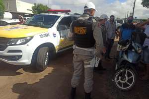 Policiais de trânsito consultaram o número do chassis, do ciclomotor Shineray Jet, de placa PDU 9828 e cor verde, e constaram a queixa de roubo/furto.