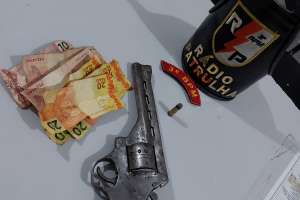 Membros da Polícia Militar apreenderam na noite deste sábado (11) uma arma de fogo e um aparelho celular, além de R$ 100 em espécie e carregadores, que foram roubados de uma lanchonete situada no bairro Jardim Esperança, em Arapiraca, no final da noite deste sábado (11).