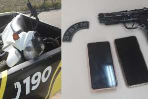 A guarnição do CISP de Girau foi acionada para dar um apoio a um agente que atua em uma guarda municipal do Agreste, que vinha em acompanhamento de dois indivíduos suspeitos, chegando no Sitio Inhames os suspeitos jogaram o simulacro e os celulares na mata e foram rendidos e imobilizados, após procurar no matagal na beira da estrada foram encontrados os celulares e o simulacro.