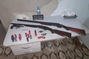 Na ocorrência foram apreendidos, um revólver calibre 22, 06 munições do mesmo calibre, 02 (duas) espingardas de Calibre 32, 04 munições Calibre 12, 08 munições calibre 16, 05 munições de calibre 32, 01 automóvel VW FOX de Placa QLB-9744 e 01 (uma) moto Honda Biz 125 KS de Placa NMB-9141. Feito a consulta, foi verificado que os veículos apreendidos tinham queixa de roubo.