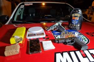 Na segunda residência, os militares encontraram uma pistola calibre 380 com dez munições e 67 balinhas de maconha in natura. Os autores foram conduzidos junto do material apreendido para a Central de Flagrantes.