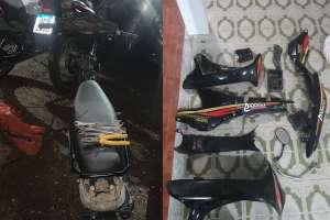 A Shineray Phoenix preta e as partes que já haviam sido retiradas foram levadas à Central de Polícia de Arapiraca.