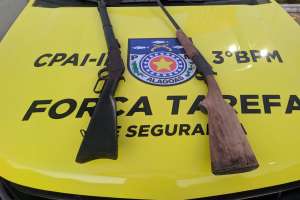 Ao ser questionado se possuía o registro das mesmas, o indivíduo disse que não, mas alegou que as armas pertenciam ao proprietário da fazenda.