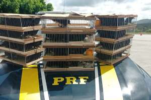 Policiais realizavam uma fiscalização no Km 185 da rodovia, quando abordaram um carro com placas de Caruaru. Ao verificar o porta-malas do veículo, foram encontradas 12 gaiolas apertadas, onde os pássaros eram transportados.