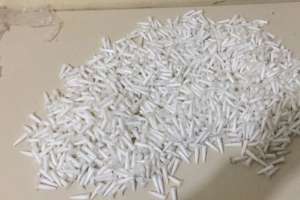 A guarnição encontrou pedras de crack e mais 554 pinos de cocaína. Além da droga, também foram apreendidos R$ 402,00 e a moto que ele estava dirigindo sem habilitação.