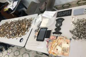 A informação chegou para a polícia de forma anônima. Populares informaram que em uma residência estava acontecendo tráfico de drogas. A guarnição deslocou-se e constatou o fato. Com autorização dos proprietários da casa, foi realizada busca domiciliar, onde foi localizada substância entorpecente, entre outros objetos de procedência duvidosa: uma balança de precisão, um pino de cocaína, 80 bombinhas de maconha, dois pacotes de saquinhos plásticos para embalar drogas, uma sacola contendo pó azulado, uma sacola contendo pó branco, um aparelho celular sansung galaxy J5 Prime, um tablet sansung de cor preta, um rolo de papel filme usado, R$ 2.488,50 em espécie em moedas e R$ 865 em espécie em cédulas.