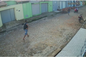 As imagens das câmeras de segurança dos vizinhos mostram perfeitamente a ação.