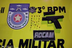 Os indivíduos e os materiais apreendidos (uma pistola Taurus, 17 munições e um iPhone 7) foram conduzidos para a Central de Polícia de Palmeira dos índios.