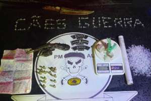 Na residência do criminoso a polícia localizou um revólver dentro de uma sacola de bebê. Na cozinha, a polícia encontrou cocaína, uma balança de precisão, entre outros objetos que confirmam o tráfico de drogas.