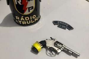 Foi realizada a abordagem e revista pessoal ao mesmo e com ele encontrado um revólver calibre 22 com 07 munições intactas.