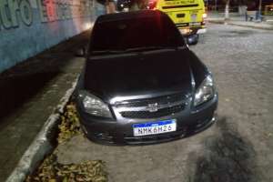 Ao chegar no local foi constatado o fato. Tratava-se de um veículo Chevrolet Celta ano 2012 cor cinza, placa NMK 6H26, que havia sido abandonado na noite anterior.