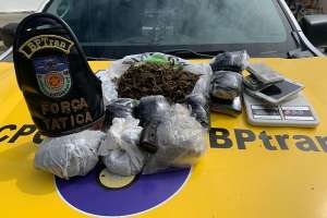 Após buscas, os militares encontraram uma caixa com vários pacotes de maconha, que totalizaram 1,7 kg, por cima da pousada. Uma balança de precisão também foi apreendida, assim como o celular do homem. O rapaz confessou que os materiais pertenciam a ele.