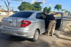 Era por volta das 16h20 quando uma equipe abordou um FORD/KA, de cor prata. Ao consultar os dados do veículo, os policiais descobriram que o carro possui queixa de apropriação indébita datada de 16/10/2021, na 4ª Delegacia Metropolitana de Aracaju/SE.