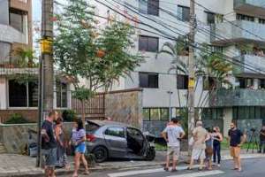 A motorista, de 78 anos, perdeu o controle veículo e bateu contra o muro de um prédio residencial.