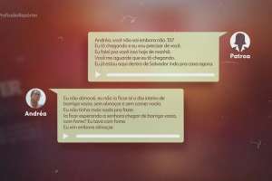 A equipe do Profissão Repórter acompanhou Andréa até a audiência, mas a outra parte não compareceu. O advogado argumenta que a profissional não recebeu o que era de direito, como aviso prévio, 13º e férias.