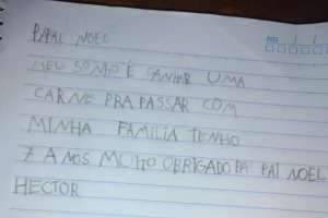 "Papai Noel, meu sonho é ganhar uma carne para passar com a minha família", escreveu o menino.