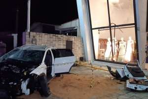 Duas pessoas feridas foram levadas ao hospital, na noite dessa segunda-feira (18), após o carro em que elas estavam se chocar com duas lojas e o muro de uma casa na avenida Prudente Morais, em Candelária, na Zona Sul de Natal.