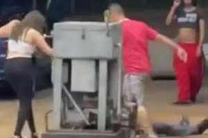 Imagens que circulam nas redes sociais mostram o momento em que um dos policiais que atendia a ocorrência leva um golpe de mata-leão pelas costas por um homem. Em seguida, o agente cai ao chão e é agredido com chutes e socos por um grupo de pessoas.