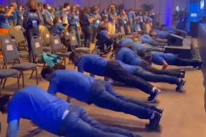 O presidente da Caixa Econômica Federal, Pedro Guimarães, colocou funcionários para fazer flexões durante um evento de fim de ano para gestores da instituição ontem.