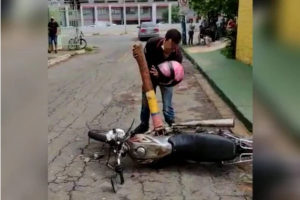Um vídeo feito no local, na Rua 87-A, no Setor Sul, mostra como ele ficou revoltado, durante a fiscalização que era feita na região. O homem aparece segurando a barra de ferro, amassando a moto e xingando.