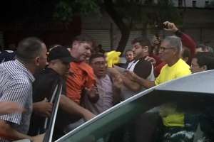 Em outras imagens registradas no local após a confusão, o senador licenciado aparece consciente e com a blusa manchada de sangue.