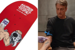 Um skate personalizado pintado com sangue diluído do astro Tony Hawk em tinta vermelha. É essa a nova aposta da empresa norte-americana de bebidas Liquid Death, que, apesar de um tanto bizarra, animou os fãs do skatista e já teve as vendas esgotadas.