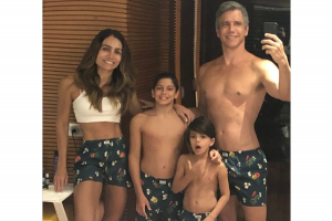 Márcio Garcia publicou, na noite de ontem (05/08), um registro ao lado de sua mulher, Andrea Santa Rosa, e dois de seus filhos, Felipe e João.