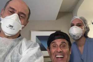 "Para comemorar a alta, dançando a dança da cura da covid-19", disse.