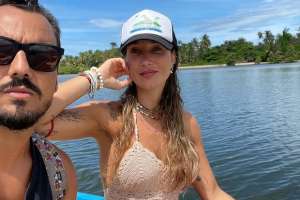 "Sempre quero mostrar meu namorado, mas ele detesta aparecer. Mas estou namorando, super comprometida", começa ela. "Está casada", diz Dek. "Casada, não. Namorando, comprometida. Ele não gosta muito de falar, mas é o amor da minha vida", completa Pugliesi.