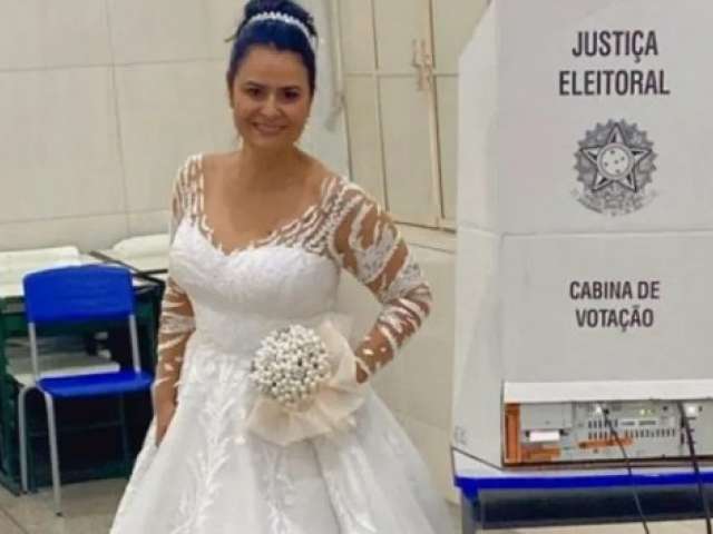 Empresária sai da própria festa de casamento e vota ainda com vestido de noiva