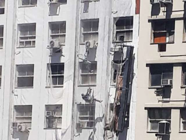 Trabalhadores ficam pendurados no 12º andar de prédio após corda arrebentar