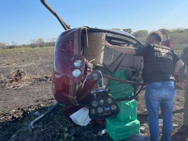 Helicóptero com quase 300 kg de cocaína cai em fazenda no Pantanal