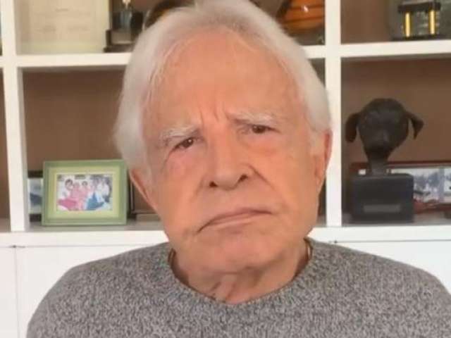 Cid Moreira faz esteira protegido por suporte de segurança