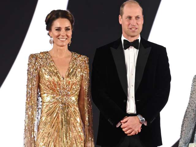 Kate Middleton brilha com vestido dourado na première de novo '007'
