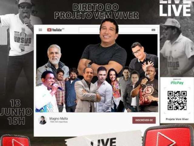 Live Solidária do Projeto Vem Viver reúne cantores e pastores neste sábado (13)