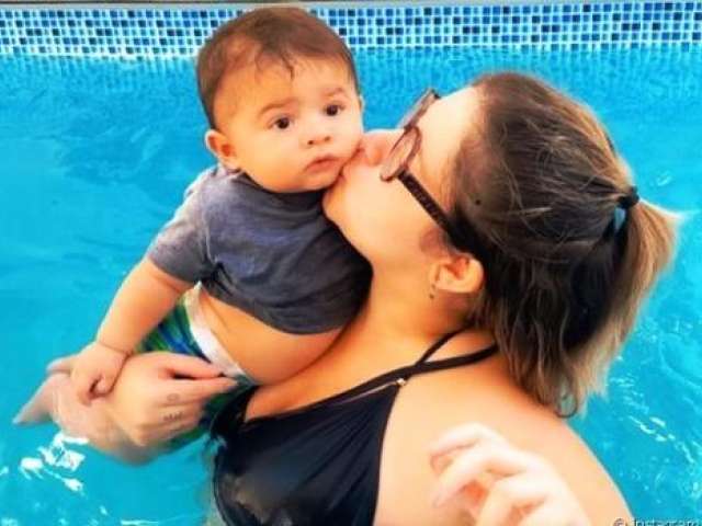 Marília Mendonça curte piscina com o filho: 'Sensação mais gostosa'